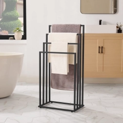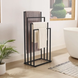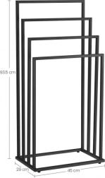 Utrzymuj łazienkę idealnie uporządkowaną dzięki stojakowi z czterema poziomami do oddzielnego wieszania. Otwarta konstrukcja zapewnia lepszą cyrkulację powietrza, a tym samym szybsze schnięcie ręczników, strojów kąpielowych czy prania. Minimalistyczny wygląd w czarnym macie doskonale pasuje do nowoczesnych wnętrz.