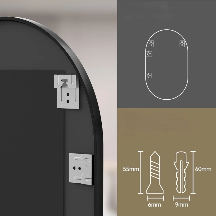 Na tylnej stronie przygotowano solidne metalowe uchwyty do bezpiecznego mocowania na ścianie. W opakowaniu znajdziesz również zestaw montażowy, dzięki czemu łatwo zainstalujesz lustro bez dokupowania dodatkowych akcesoriów. Wysokiej jakości 4‑mm szkło lustrzane zapewnia czysty i ostry obraz.