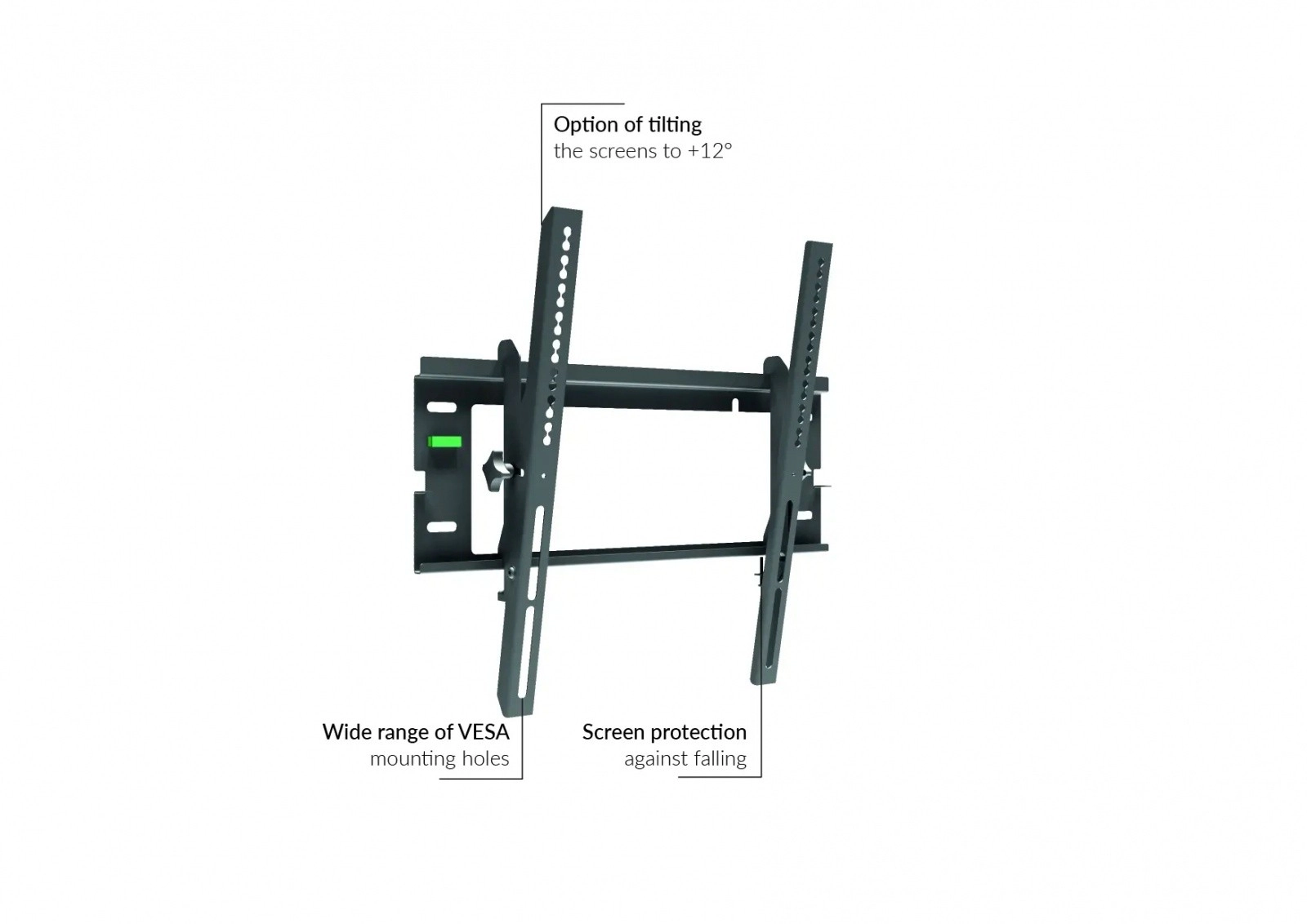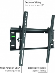 Solidna stalowa konstrukcja zapewnia niezawodność i nośność do 40 kg. Dzięki szerokiej kompatybilności ze standardem VESA montaż jest prosty i szybki, a zintegrowana libella pomaga w dokładnym wypoziomowaniu uchwytu.