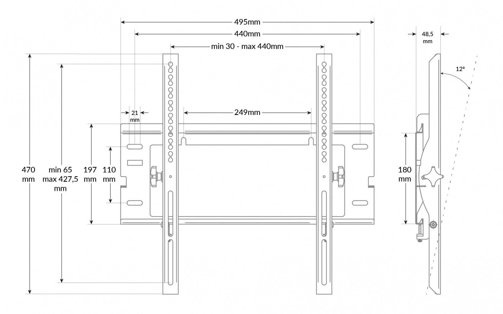 Precyzyjny pochył do 12° dla wygodnego oglądania