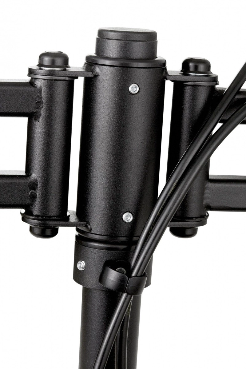 Uchwyt jest idealny do dyspozytorni, zastosowań przemysłowych, transportu oraz centrów monitoringu. W zestawie znajduje się podwójny system mocowania (zacisk C lub przepust) dla elastycznej instalacji na różnych typach blatów oraz zintegrowane prowadzenie okablowania dla czystego wyglądu stanowiska.