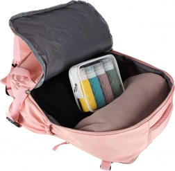Szukasz uniwersalnego plecaka na wycieczki, do samolotu i do codziennego użytku? Ten różowy plecak podróżny łączy kompaktowe wymiary z przemyślaną organizacją. Trzy komory, w tym oddzielna dolna przegroda na zamek, utrzymają obuwie lub bieliznę z dala od reszty rzeczy, a przednie kieszenie na zamek i elastyczne boczne kieszenie pomieszczą butelkę i drobiazgi pod ręką.