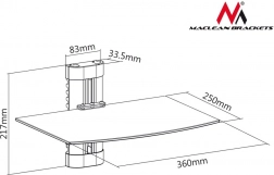 Maclean MC-663 to wysokiej jakości ścienna półka z 5‑mm hartowanym szkłem, która utrzyma Twoje urządzenia multimedialne bezpiecznie i w zasięgu ręki. Minimalistyczny design z czarnym szkłem świetnie komponuje się z nowoczesnymi telewizorami i wnętrzami.