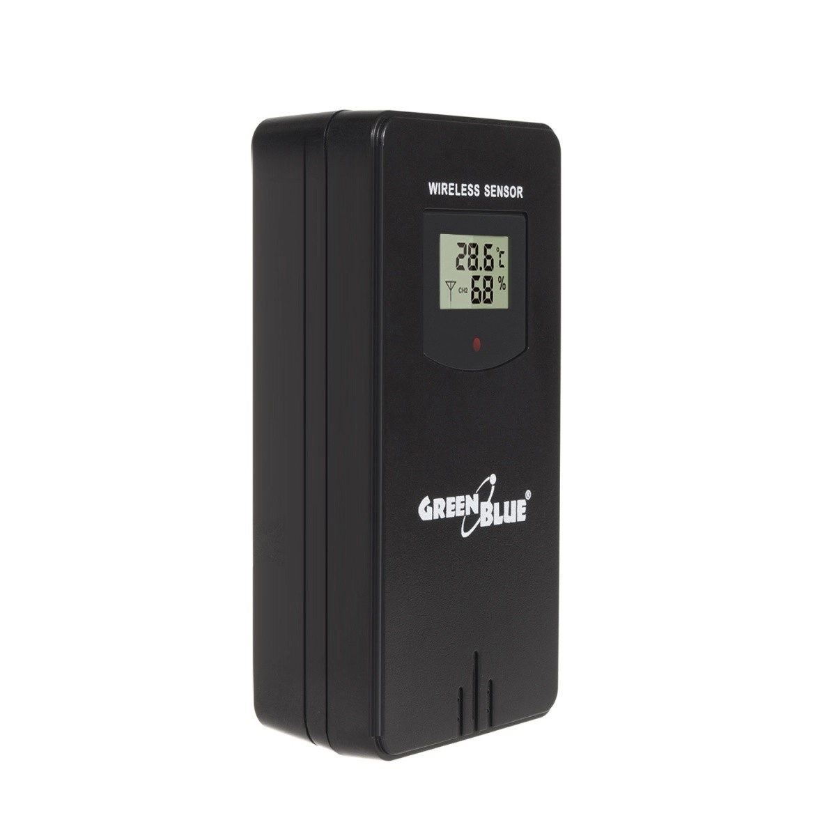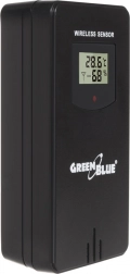 Kompaktowy zewnętrzny czujnik mierzy temperaturę i wilgotność, a dane bezprzewodowo przesyła do jednostki głównej na odległość około 60 metrów.