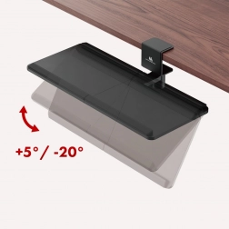 Zwiększ komfort pracy dzięki podwieszanemu uchwytowi na klawiaturę MC-108B, który mocuje się do blatu za pomocą solidnego zacisku (clamp) bez wiercenia. Przestronna, wysuwana półka zwolni miejsce na blacie, zapewni ergonomiczne ułożenie klawiatury oraz boczną szufladkę na akcesoria. Podwyższone krawędzie zapobiegają zsuwaniu się przedmiotów, a montaż wykonasz szybko dzięki dołączonym akcesoriom montażowym.