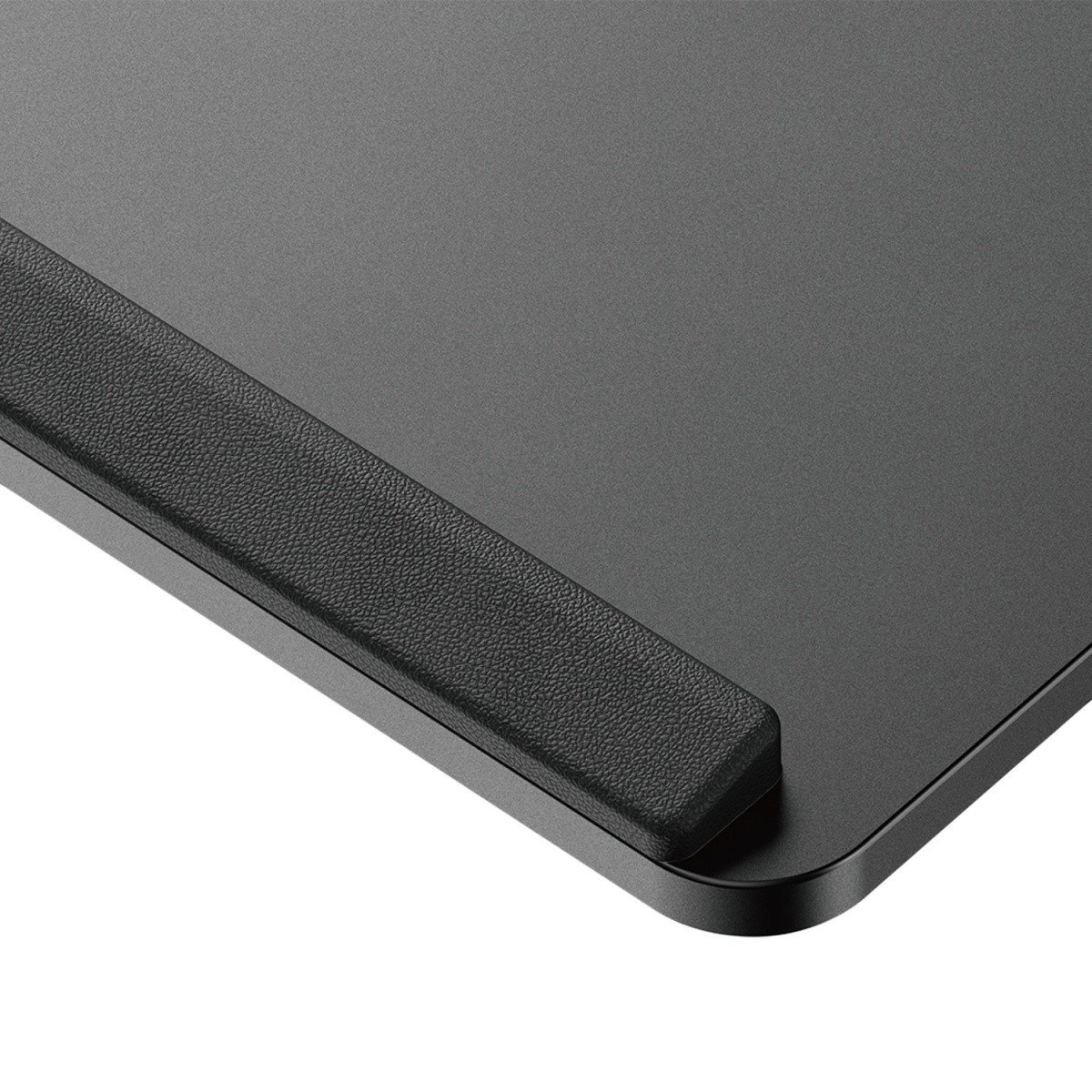 - Bezpieczne krawędzie – podwyższone ranty przeciw zsuwaniu się klawiatury i myszy.