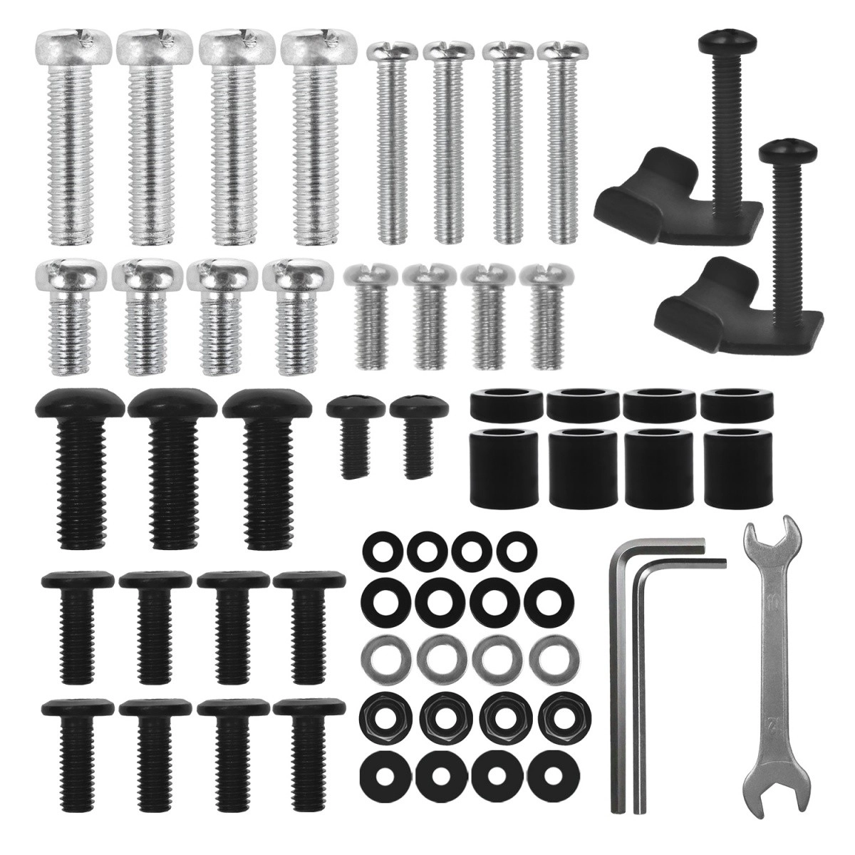 W zestawie znajduje się bogaty komplet śrub, dystansów, kluczy imbusowych i narzędzi – montaż wykonasz szybko i bez poszukiwania dodatkowych elementów.