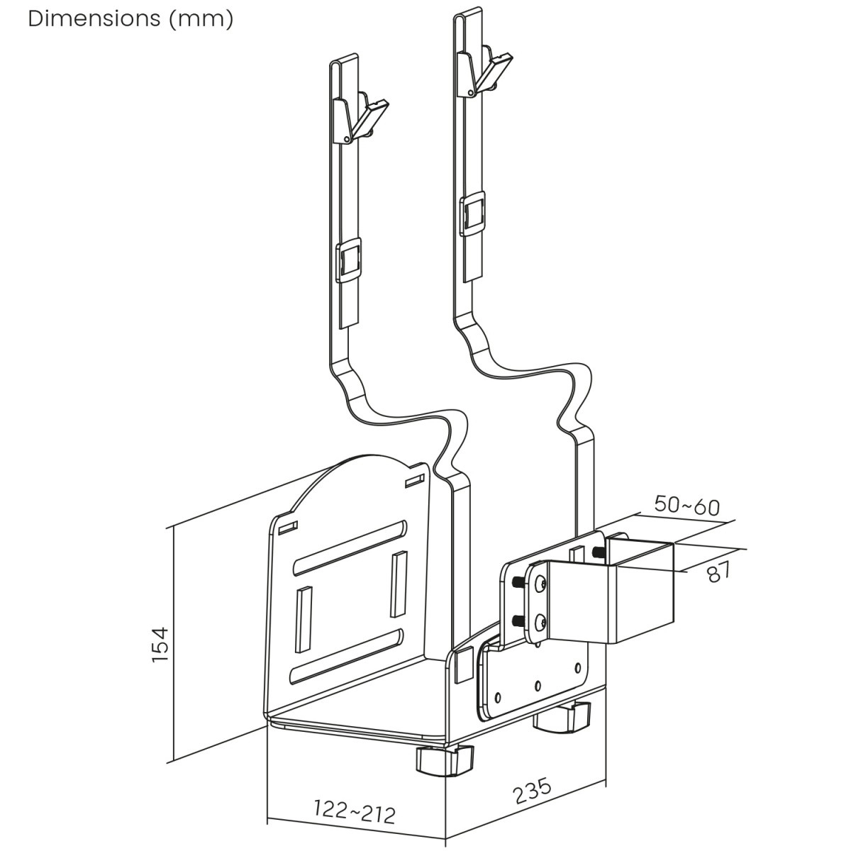 Uniwersalny uchwyt na komputer stacjonarny oszczędza miejsce i zwiększa porządek w miejscu pracy. Umożliwia montaż na ścianie lub słupku, a dzięki solidnej stalowej konstrukcji i regulowanym paskom bezpiecznie utrzyma obudowę. Szeroki zakres regulacji głębokości zapewnia kompatybilność z większością obudów typu tower, a udźwig do 10 kg gwarantuje niezawodne podparcie nawet przy wibracjach.