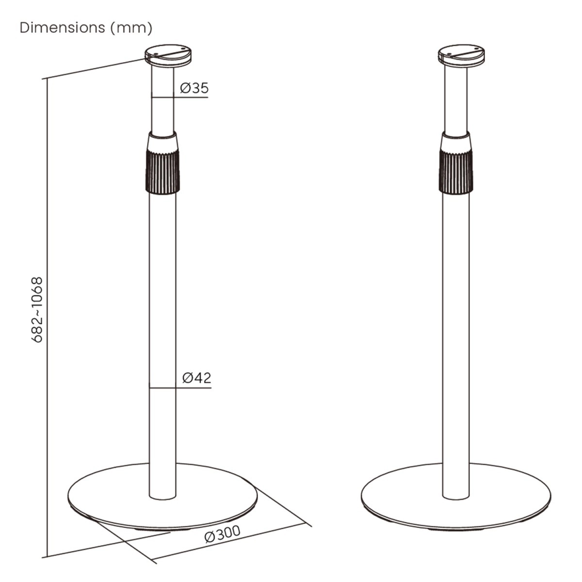 Stojaki podłogowe MC-496 zostały zaprojektowane do perfekcyjnego ustawienia głośników SONOS ERA 100 i ERA 300. Dzięki teleskopowej regulacji wysokości łatwo dopasujesz optymalny poziom odsłuchu i kierunek dźwięku. Solidna stalowa podstawa i mocny słup zapewniają bezpieczną stabilność bez niepożądanych drgań.
