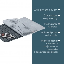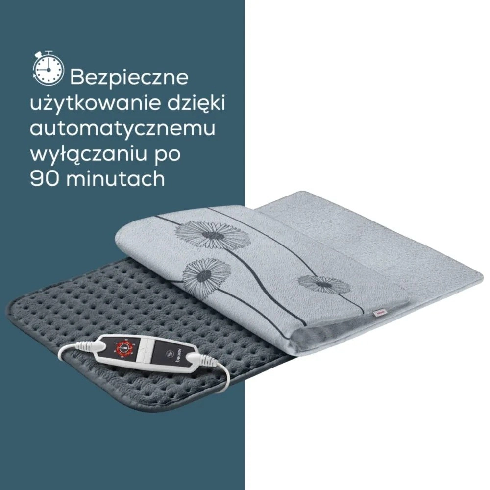 Poduszka jest wykonana z miękkiego, oddychającego materiału, przyjemnego w dotyku. O Twoje bezpieczeństwo dba system bezpieczeństwa Beurer z bieżącą kontrolą temperatury i automatycznym wyłączeniem po 90 minutach.