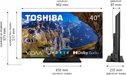Elegancki 40" telewizor LED z wąską ramką oferuje czysty obraz, wierne kolory i nowoczesny design, który świetnie wpasuje się w każde wnętrze. Dzięki energooszczędnej technologii LED zapewnia niskie zużycie energii i niezawodną pracę na co dzień.