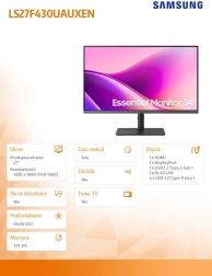 Ciesz się czystym obrazem na 27″ monitorze Samsung o minimalistycznym wzornictwie, które oszczędza miejsce na biurku i świetnie wygląda. Dzięki wąskim ramkom ekran prezentuje się nowocześnie i kieruje uwagę na treść – arkusze, dokumenty i multimedia.