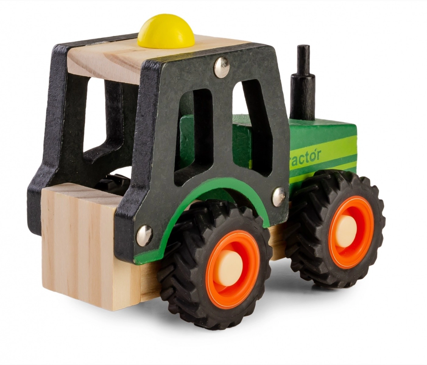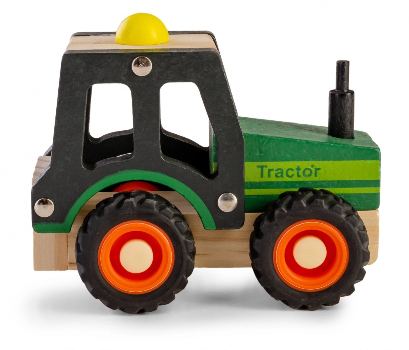 Drewniany traktor to świetny wybór na pierwsze pojazdy do dziecięcego pokoju. Dzięki solidnemu wykonaniu i zaokrąglonym kształtom jest bezpieczny, przyjemny w dotyku i gotowy na codzienną zabawę. Miękkie gumowe opony zapewniają dobrą przyczepność i cichy ruch po podłodze.