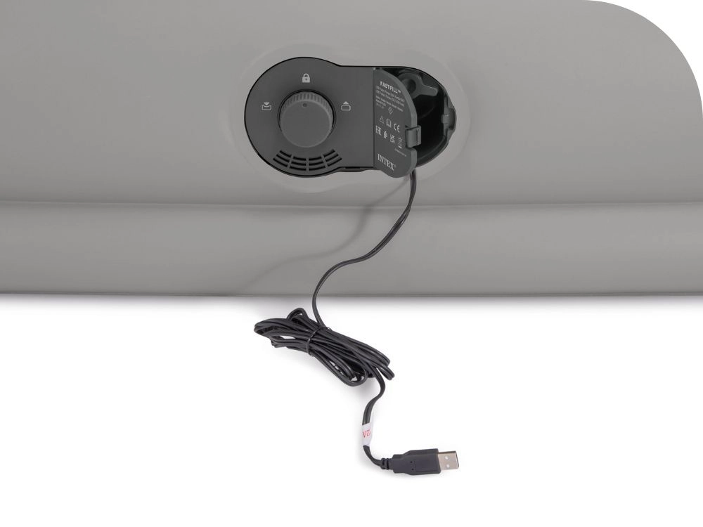 Wbudowana pompa USB 5V/2A pompuje materac w około 240 sekund. Zasilisz ją łatwo z powerbanku, ładowarki do telefonu, portu USB lub ładowarki samochodowej – idealna w domu i w podróży. Certyfikacja AirLock gwarantuje szczelność i niezawodność nawet przy częstym użytkowaniu.