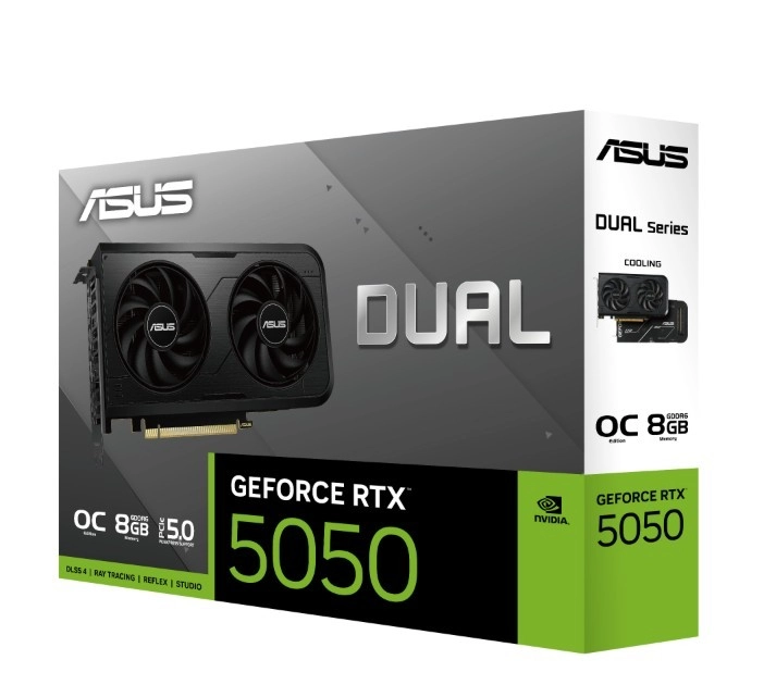 ASUS Dual GeForce RTX 5050 OC 8GB GDDR6 wprowadza topowe technologie generacji GEFORCE RTX do kompaktowej obudowy. Dwa wentylatory Axial-tech efektywnie kierują przepływ powietrza przez gęsty radiator, a 2‑slotowa konstrukcja zapewnia świetną kompatybilność z większością obudów. Przełączalny podwójny BIOS umożliwia wybór między maksymalnym chłodzeniem (Performance) a cichą pracą (Quiet).