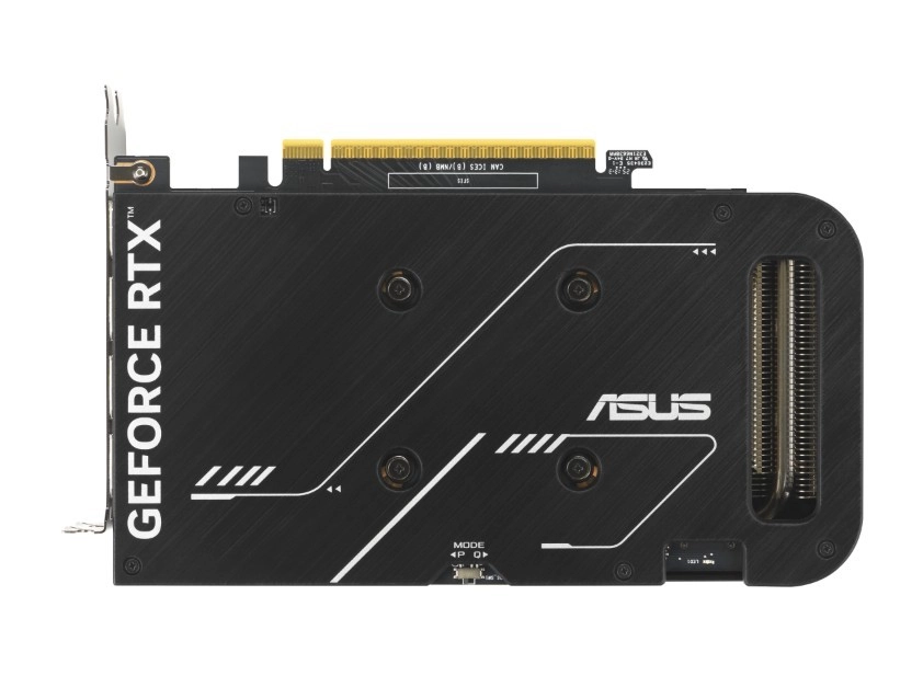 Smukłe, 2‑slotowe body mieści się nawet w mniejszych obudowach. Metalowy backplate zwiększa sztywność i pomaga w odprowadzaniu ciepła.
