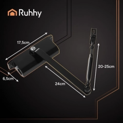 Niezawodny i trwały samozamykacz RUHHY idealnie sprawdzi się do zastosowań wewnętrznych i zewnętrznych. Dzięki stabilnej konstrukcji, odporności na warunki atmosferyczne oraz możliwości montażu na drzwiach prawych i lewych zapewnia długotrwałą, bezproblemową pracę. Podwójna regulacja umożliwia ustawienie zarówno prędkości zamykania (150°–20°), jak i prędkości domyku (20°–0°) dla maksymalnego komfortu i bezpieczeństwa.