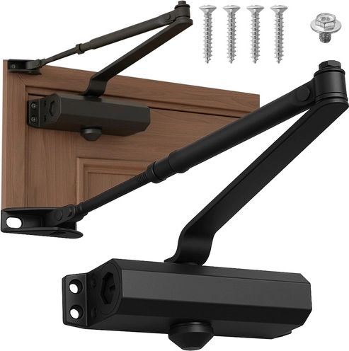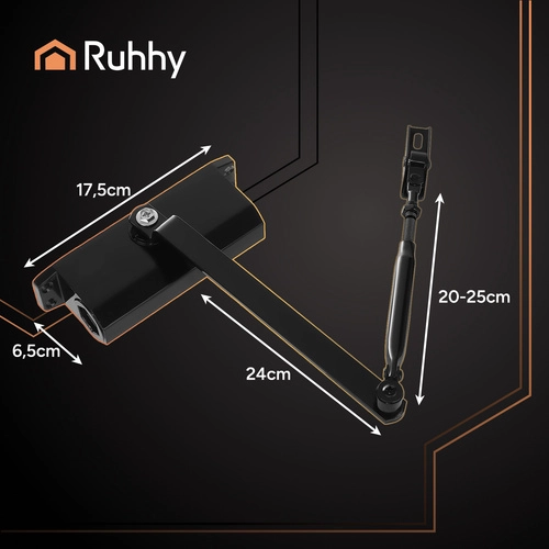 Uniwersalny samozamykacz do drzwi RUHHY dla skrzydeł o masie 40–65 kg zapewnia płynne i ciche domykanie bez trzaskania. Dzięki dwustronnemu montażowi na drzwi prawe i lewe oraz podwójnej regulacji siły i prędkości chroni zawiasy, poprawia szczelność, izolację termiczną i akustyczną, a także zwiększa komfort i bezpieczeństwo w domu, biurze czy przestrzeniach komercyjnych.