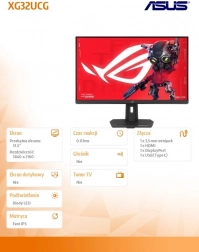 ASUS ROG XG32UCG został stworzony dla wymagających graczy i kreatywnych twórców. Duża przekątna 31,5'' z szczegółową rozdzielczością 4K UHD oddaje każdy detal, a stabilna podstawa z regulacją wysokości, pochylenia i obrotem zapewnia wygodne oglądanie przez cały dzień. Dzięki cienkim ramkom monitor świetnie sprawdzi się także w konfiguracjach wielomonitorowych.