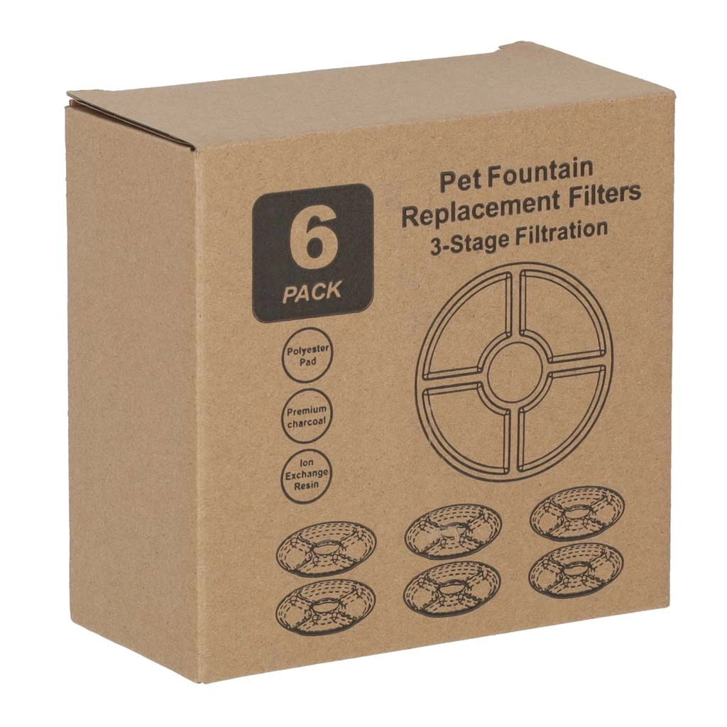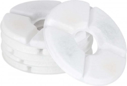 Ten zestaw zawiera 6 okrągłych filtrów zaprojektowanych do fontann dla zwierząt. Dzięki połączeniu aktywnego węgla i żywicy jonowymiennej poprawiają smak i jakość wody, redukują zapachy oraz wychwytują drobne cząsteczki. Regularna wymiana filtra wspiera lepsze nawadnianie Twojego pupila i pomaga utrzymać fontannę w idealnym stanie.