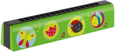 Ta dziecięca drewniana harmonijka to świetny start w świat muzyki. Dzięki solidnej drewnianej konstrukcji i wesołym wzorom łatwo przyciąga uwagę i motywuje do odkrywania dźwięków oraz melodii. Lekka i poręczna, idealna dla małych początkujących.