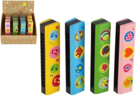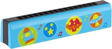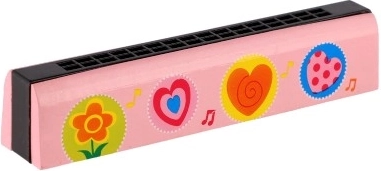 Harmonijka jest dostępna w wielu wersjach kolorystycznych z radosnymi motywami (serduszka, zwierzątka, kosmos, nuty), więc każde dziecko znajdzie swoją ulubioną. Kompaktowe wymiary umożliwiają łatwe przenoszenie w podróży, do babci czy do przedszkola.