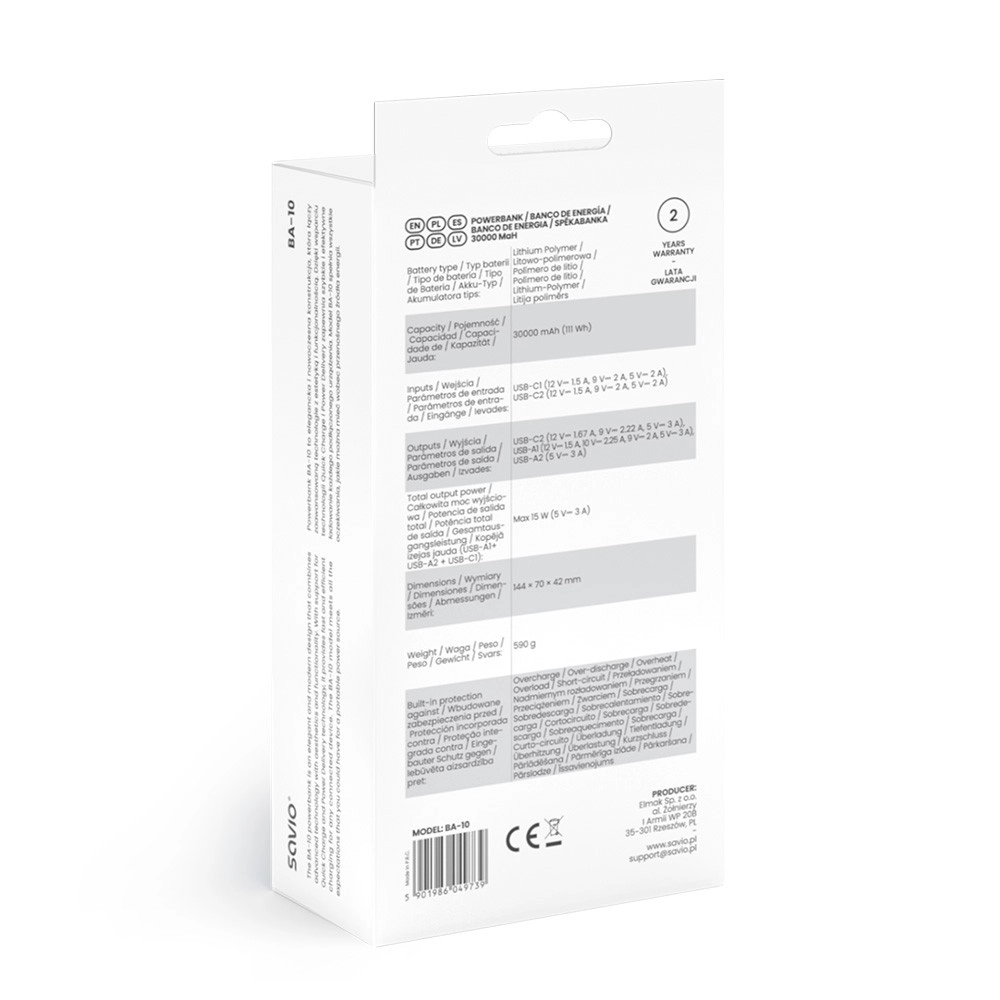 Szukasz pewnego źródła energii zawsze i wszędzie? Ta powerbanka o ogromnej pojemności 30000 mAh (111 Wh) dostarczy energii Twojemu telefonowi, tabletowi czy słuchawkom na wiele ładowań bez potrzeby korzystania z gniazdka. Świetny wybór na wycieczki, wyjazdy służbowe i codzienne dojazdy.