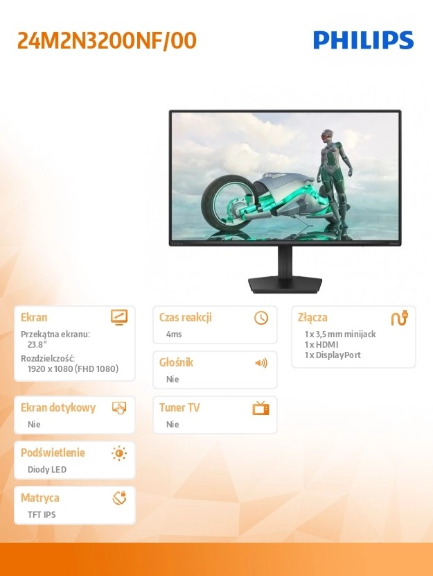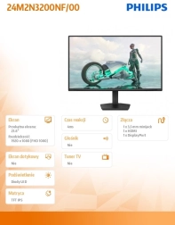Philips 24" gamingowy monitor oferuje idealne połączenie szybkości, jakości obrazu i eleganckiego, wąskoramkowego wzornictwa. Dzięki odświeżaniu 144 Hz i szybkiemu czasowi reakcji sprawdzi się w grach akcji, e-sporcie oraz w płynnej pracy. Panel IPS gwarantuje precyzyjne kolory i stabilny obraz pod każdym kątem.