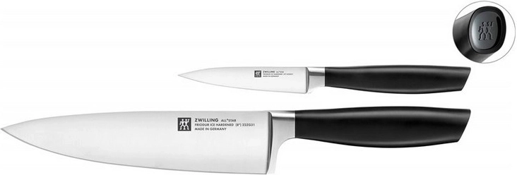 Ten stylowy czarny zestaw 2 noży ALL STAR jest idealny do szybkiego i precyzyjnego przygotowania składników. Krótkie, 10‑centymetrowe ostrze świetnie sprawdza się do krojenia owoców i warzyw, obierania i precyzyjnych prac, a drugi nóż posłuży jako wszechstronny pomocnik w kuchni.