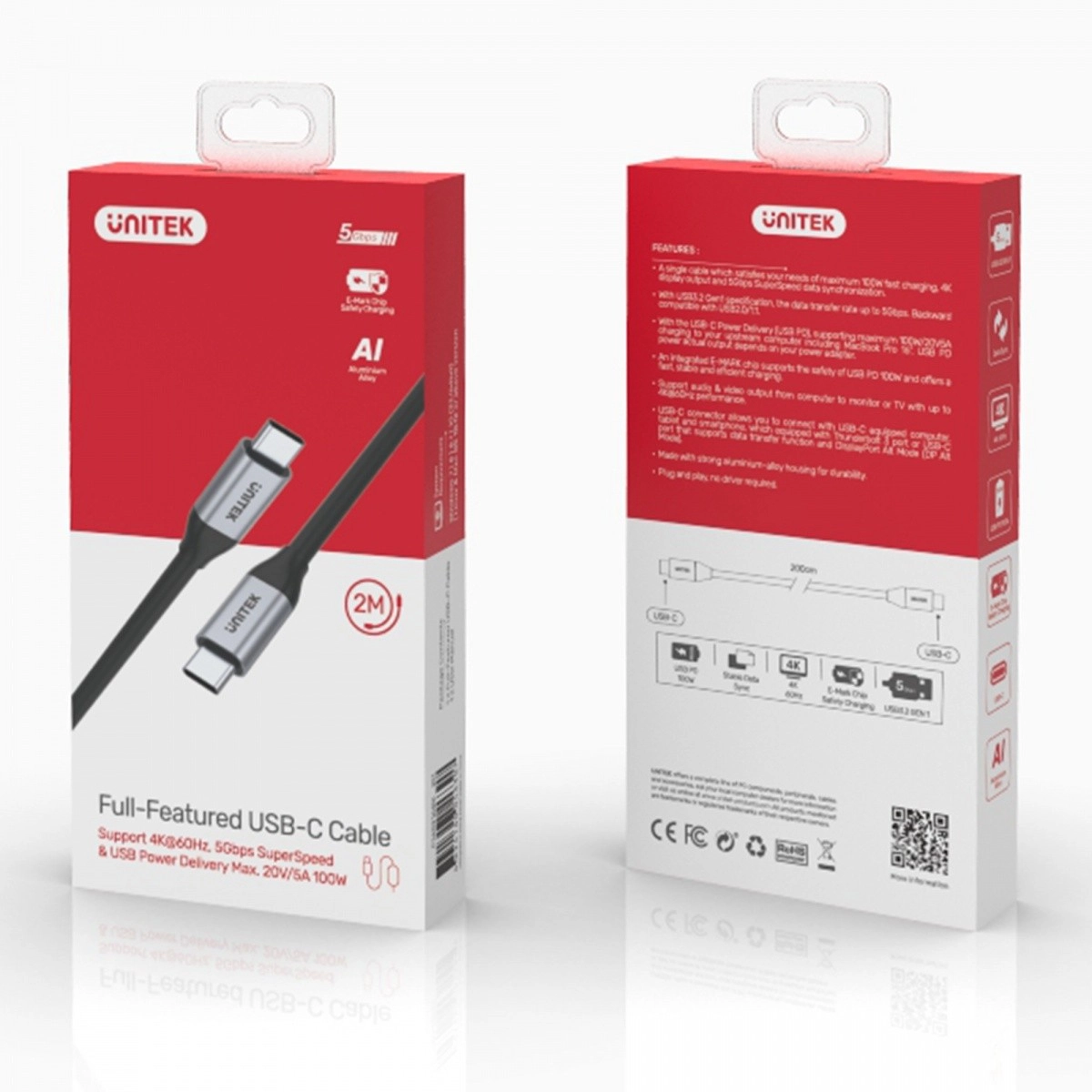 Wytrzymałe aluminiowe końcówki oraz zintegrowany układ E‑MARK automatycznie dobierają bezpieczne parametry prądu, dzięki czemu ładowanie i synchronizacja są szybkie i niezawodne. Długość 2 m zapewnia wygodny zasięg w domu, biurze i w podróży – od połączenia laptopa z monitorem 4K po podłączenie telefonu do telewizora.
