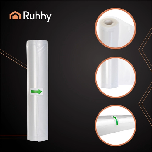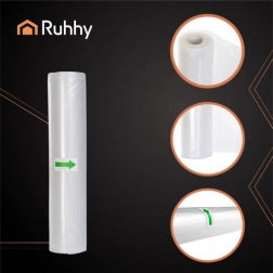 Praktyczna moletowana folia próżniowa RUHHY w formie rękawa o wymiarach 28 × 600 cm utrzymuje żywność dłużej świeżą. Dzięki ryflowanej strukturze umożliwia szybkie odsysanie powietrza i mocne, szczelne zgrzewy. Jest bezpieczna w kontakcie z żywnością, odpowiednia do sous‑vide i mrożenia, a także zapewnia ochronę przed wilgocią, powietrzem i zapachami.