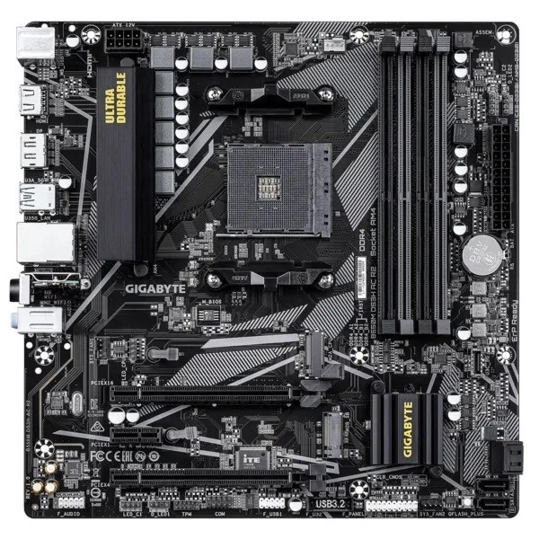 GIGABYTE B550M DS3H AC R2 zapewnia zrównoważone połączenie wydajności, łączności i niezawodności dla platformy AMD AM4. Płyta obsługuje procesory AMD Ryzen 5000/4000/3000, oferuje stabilne zasilanie dzięki cyfrowemu VRM 5+3 fazy oraz efektywne chłodzenie z VRM Thermal Armor. Dzięki Wi‑Fi 5, GbE LAN oraz wyjściom wideo HDMI i DisplayPort łatwo zbudujesz nowoczesny komputer multimedialny lub gamingowy.