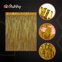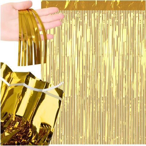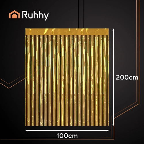 Złota kurtyna frędzli RUHHY o wymiarach 100 × 200 cm to prosty sposób, aby dodać imprezom i fotobudkom natychmiastowy efekt WOW. Dzięki taśmie samoprzylepnej zamontujesz ją w kilka chwil na ścianie lub futrynie, a jej błyszcząca metaliczna powierzchnia stworzy elegancką atmosferę na urodzinach, weselach, Sylwestrze i imprezach tematycznych.