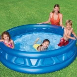 Dmuchany basen jest przeznaczony dla dzieci od 3 lat i świetnie sprawdzi się do szybkiego ochłodzenia w upalne dni. Maksymalna zalecana wysokość lustra wody to 36 cm, dzięki czemu woda pozostaje bezpieczna dla kilkuletnich dzieci (zawsze pod nadzorem osoby dorosłej). Do głównych zalet należą: