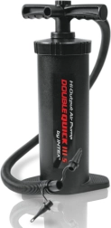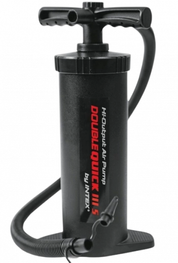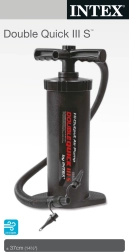 Ręczna pompka DOUBLE QUICK III S Intex to ręczna pompka z wężem do szybkiego pompowania i wypompowywania basenów, materacy, leżanek, piłek czy zabawek dla dzieci. Podwójne działanie pozwala pompować zarówno przy ruchu w górę, jak i w dół. Aby napompować lub wypuścić powietrze, wystarczy zmienić kierunek przepływu powietrza. Pompka zapewnia wysoki przepływ powietrza dla szybszego pompowania. Wysokość: 37 cm. Odpowiednia od 14. roku życia.