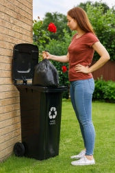 Solidna pokrywa na zawiasie zapobiega przedostawaniu się wody, ogranicza zapachy i utrzymuje zawartość bezpiecznie wewnątrz pojemnika.