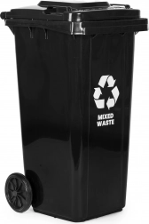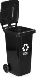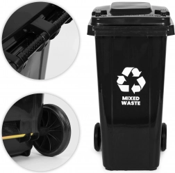 Solidny pojemnik 120 l na odpady zmieszane wykonany jest z wysokiej jakości HDPE, które jest odporne na promieniowanie UV, chemikalia i uszkodzenia mechaniczne. Uszczelniona pokrywa zapobiega wnikaniu wody i ulatnianiu się zapachów, dzięki czemu utrzymuje otoczenie w czystości i higienie. Dzięki ergonomicznym uchwytom oraz gumowym kołom na metalowej osi kosz wygodnie się przemieszcza nawet w pełni załadowany.