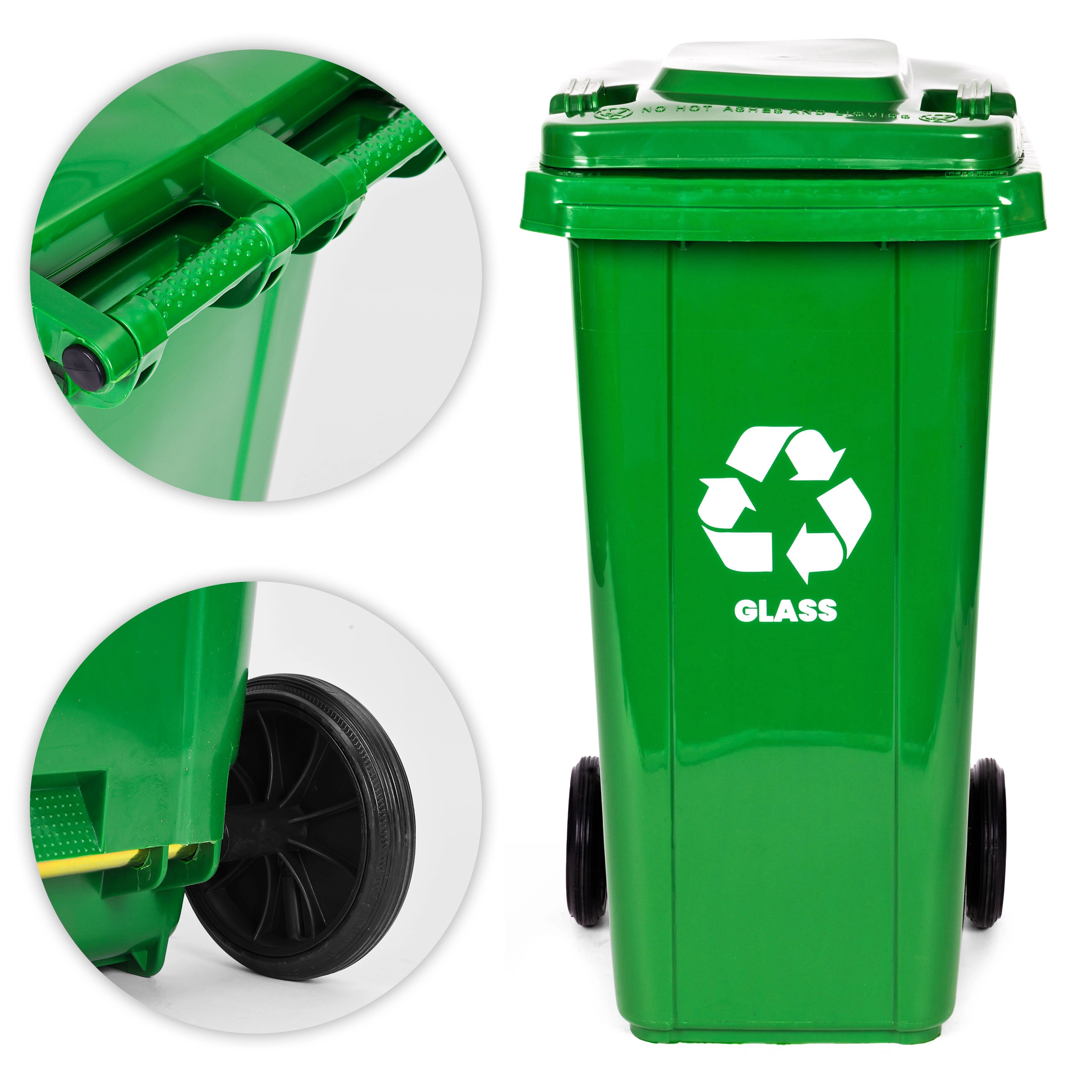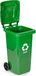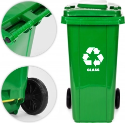 Praktyczny i wytrzymały pojemnik do segregacji szkła o pojemności 120 l z HDPE odpornym na UV, chemikalia i uszkodzenia mechaniczne. Gumowe koła oraz ergonomiczny uchwyt zapewniają łatwe manewrowanie, a uszczelniona pokrywa chroni przed deszczem i zapachem. Stabilność na śliskiej nawierzchni zwiększają antypoślizgowe nóżki. Odpowiedni dla domów i firm, kompatybilny z wywozem komunalnym zgodnie z EN 840 i certyfikowany ISO9001, ISO14001, ISO45001.