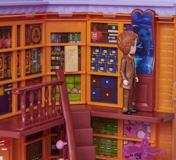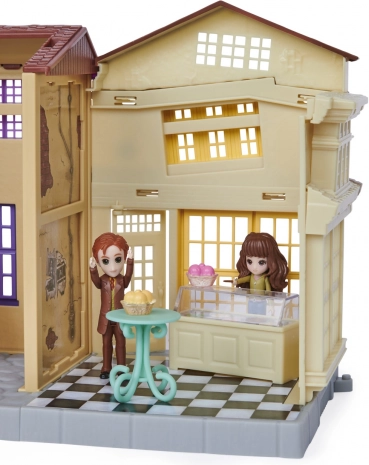 Odkryj magiczny świat Ulicy Pokątnej w szczegółowym zestawie do zabawy z figurkami Hermiony, Freda i George’a. Zestaw oferuje trzy kultowe sklepy – Sklep z żartami braci Weasley, Wielką Ptaszarnię oraz Lodziarnię Floriana Fortescue – uzupełnione o efekty świetlne i dźwiękowe oraz bogate akcesoria do kreatywnej zabawy dla dzieci od 6 lat.