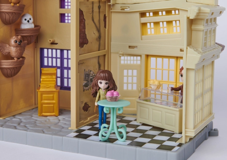 Dzięki efektom świetlnym i dźwiękowym oraz szerokiej gamie akcesoriów – od żartobliwych gadżetów przez sowy po ladę z lodami – dzieci spędzą długie godziny na zabawie. Zestaw idealnie sprawdzi się jako prezent dla małych czarodziejów i czarodziejek, którzy kochają kreatywne budowanie i zabawę w role.