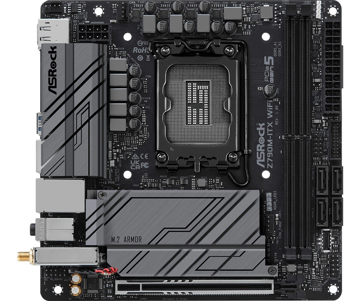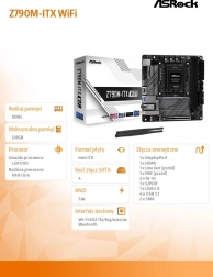 ASROCK Z790M‑ITX WiFi to idealny wybór do wydajnych, a jednocześnie oszczędnych przestrzennie komputerów. Oferuje zasilanie 7+1+1 z Dr.MOS dla stabilnej pracy procesorów Intel Core do 14. generacji, dwa sloty DDR5 z obsługą wysokich częstotliwości oraz pełny slot PCIe 5.0 x16 dla najnowszych kart graficznych.