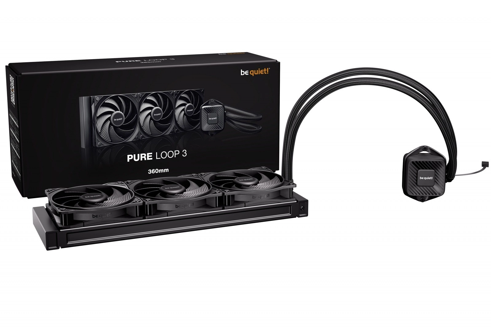 Be quiet! Pure Loop 3 360 mm to wydajne i wyjątkowo ciche chłodzenie wodne all‑in‑one do nowoczesnych i podkręconych zestawów. Oferuje wysoką wydajność chłodzenia dla wszystkich procesorów konsumenckich, pompę PWM z 6‑biegunowym silnikiem dla minimalnych wibracji oraz trzy wentylatory 120 mm Pure Wings 3 o wysokim ciśnieniu statycznym i niskim hałasie. Zachwyca także szeregowe łączenie wentylatorów, łatwy montaż z elastycznymi wężami i elegancki, minimalistyczny design.