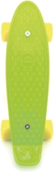 Kompaktowy pennyboard dla dzieci i początkujących oferuje stabilną jazdę, udźwig 60 kg oraz wytrzymałe metalowe trucki. Dzięki długości 43 cm jest łatwy w prowadzeniu i idealny do nauki podstawowych trików oraz swobodnej jazdy po mieście. Połączenie zielonego decku i żółtych kółeczek przyciąga uwagę od pierwszego wejrzenia.