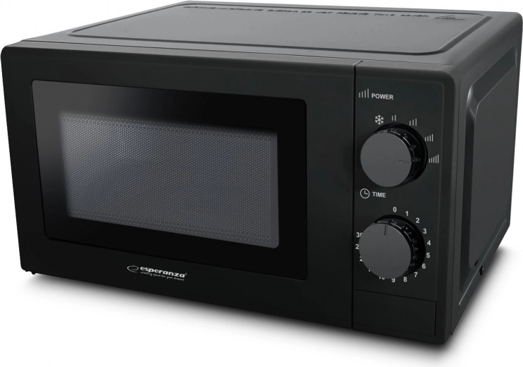 Ciesz się szybkim i wygodnym gotowaniem z kuchenką mikrofalową ESPERANZA ESTOFADO w eleganckim czarnym kolorze. Oferuje proste, mechaniczne sterowanie pokrętłem, 5 poziomów mocy oraz moc wyjściową 700 W do szybkiego podgrzewania i rozmrażania. Szklany talerz obrotowy 245 mm zapewnia równomierne podgrzewanie potraw w środku i na powierzchni.