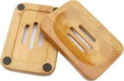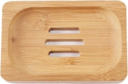 Praktyczna stojąca bambusowa mydelniczka. Wyposażona w trzy estetyczne otwory odpływowe, które zapobiegają gromadzeniu się osadu z mydła i wody. W dolnej części znajdują się 4 antypoślizgowe podkładki, które zapobiegają przesuwaniu się mydelniczki po powierzchni. Dzięki minimalistycznemu designowi jest niezbędnym dodatkiem do każdej nowoczesnej łazienki.