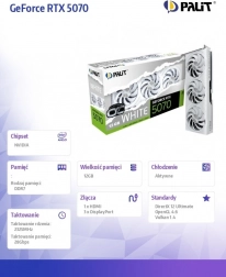 GeForce RTX 5070 WHITE OC oferuje topową wydajność nowej generacji w czysto białym wykończeniu, które idealnie wpasuje się w jasne zestawy PC. Trzy wentylatory osiowe i masywny radiator z kompozytowymi rurkami cieplnymi zapewniają efektywne odprowadzanie ciepła i cichą pracę nawet podczas długich sesji gamingowych.