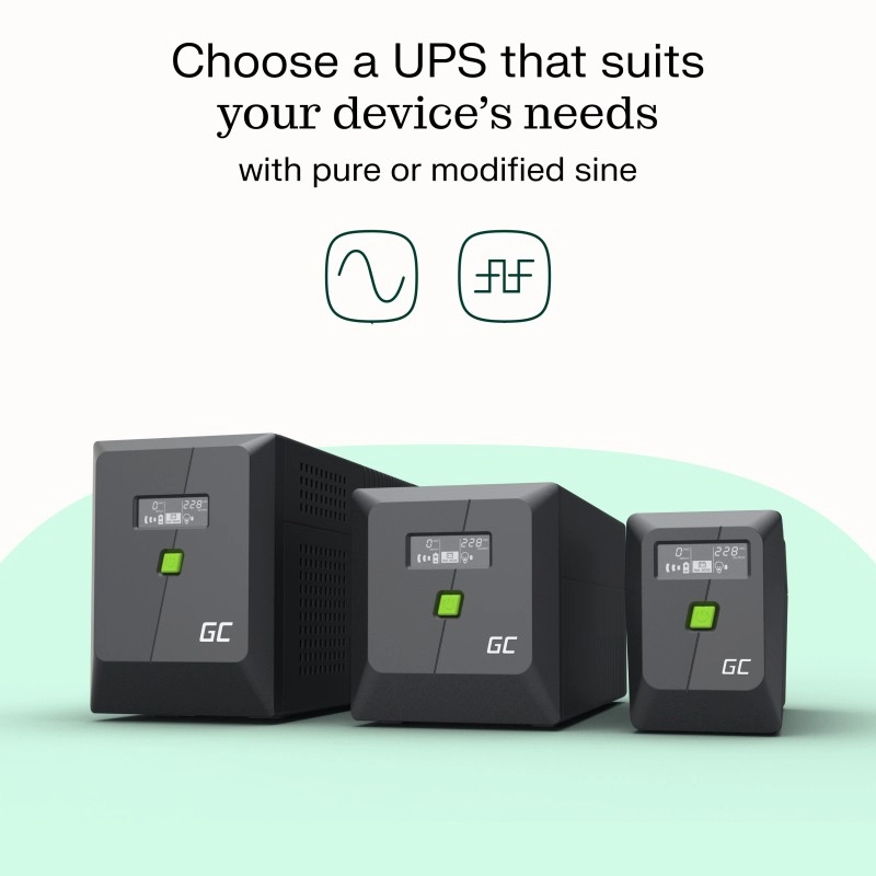 Ten kompaktowy UPS jest idealny do domowego biura, stacji roboczych, routerów i innej wrażliwej elektroniki. Oferuje stabilne podtrzymanie z modyfikowaną sinusoidą, która utrzymuje urządzenia w pracy podczas nagłych zaników oraz chroni je przed niebezpiecznymi skokami napięcia. Przejrzysty wyświetlacz LCD pokazuje napięcie wejściowe/wyjściowe, stan baterii i tryby pracy, a obniżona jasność zwiększa komfort odczytu.