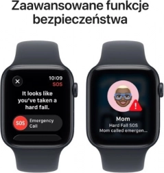 Model GPS + Cellular pozwala dzwonić i wysyłać wiadomości bez iPhone’a. Apple Pay umożliwia zbliżeniowe płatności z poziomu zegarka. Funkcje SOS, Wykrywanie upadku i Wykrywanie wypadku samochodowego potrafią wezwać pomoc i udostępnić lokalizację. Wodoszczelność 50 m sprawdzi się podczas pływania i surfowania, a szybkie ładowanie i czas pracy do 18 godzin dotrzymają kroku Twojemu dniu.