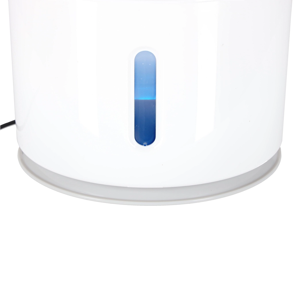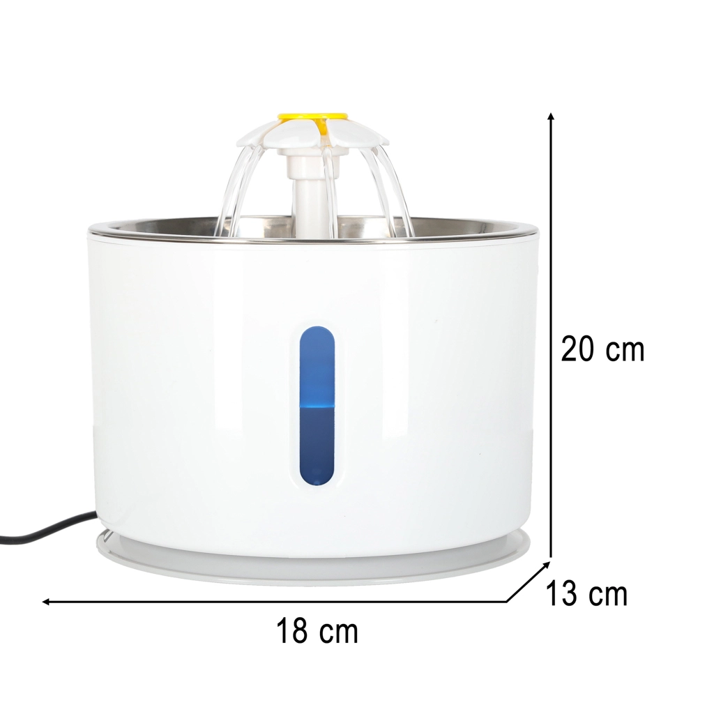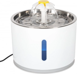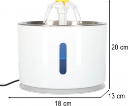 Automatyczna poidełko dla psów i kotów zapewnia ciągłą cyrkulację wody, która dzięki przepływowi jest chłodniejsza, czystsza i zachęca zwierzęta do częstszego picia. Nierdzewna pokrywa jest higieniczna i łatwa w czyszczeniu, a wizjer z niebieskim podświetleniem LED pokazuje aktualny poziom.