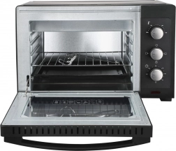 Obsługa jest prosta i intuicyjna: ustawiasz temperaturę w zakresie 100–230 °C, wybierasz jedną z 3 funkcji pieczenia i uruchamiasz minutnik do 60 minut z sygnałem dźwiękowym. Konstrukcja z większą szczeliną między obudową a komorą wewnętrzną wspiera efektywniejsze odprowadzanie ciepła i stabilność podczas pracy.
